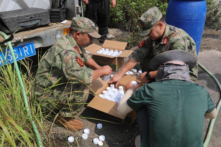 为从源头切断蚊媒孽生链,荔湾区民兵志愿分队顶着炎炎烈日,深入居民社区、闲置工地、背街小巷等场所开展环境卫生整治攻坚,仔细清理废弃容器、废旧轮胎、塑料薄膜等各类积水容器和卫生死角,并对难以清除的积水点,进行精准规范的药物喷洒。